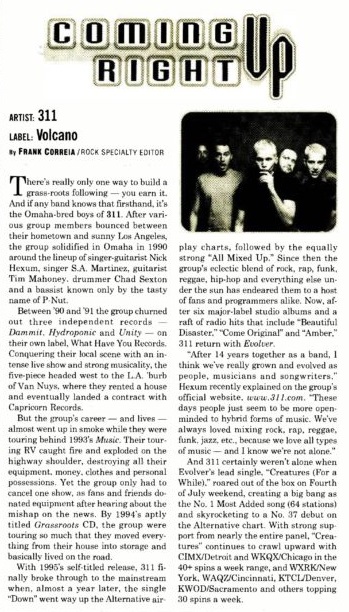 Radio & Records: July 2003 issue Posted by311ArchiveJuly 20, 2003December 24, 2022Posted inMagazineTags:2000s Radio-and-Records-2003-07-11 Related