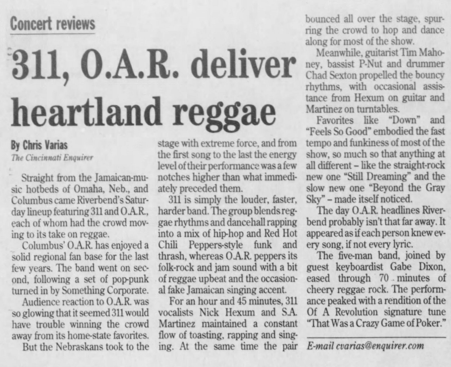 The Cincinnati Enquirer (8/11/03) Posted byarcsensorAugust 11, 2003March 6, 2023Posted inConcert Review, NewspaperTags:Newspaper Related