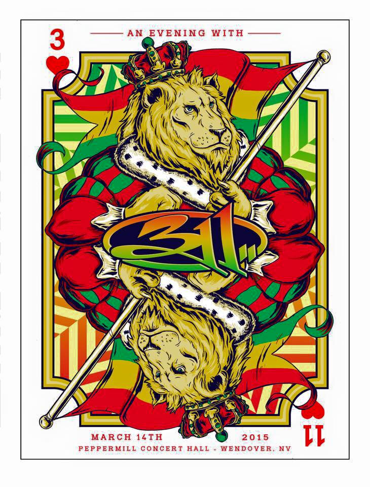 3/14/15 Wendover, NV Posted by311ArchiveMarch 14, 2015August 24, 2024Posted in2015, Ian Williams, NV, Posters Artist: Ian WilliamsShow: Peppermill Concert Hall in Wendover, NV Related