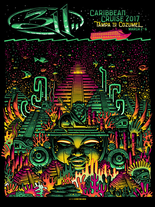 311 Cruise 2017 Posted by311ArchiveMarch 2, 2017August 24, 2024Posted in2017, Cruise, Cruise Merch, Munk One, Posters, Special Events Artist: Munk OneShows: 311 Caribbean Cruise 20173/2/17 – 3/6/17 311 CARIBBEAN CRUISE V Tampa to Cozumel, MX Related
