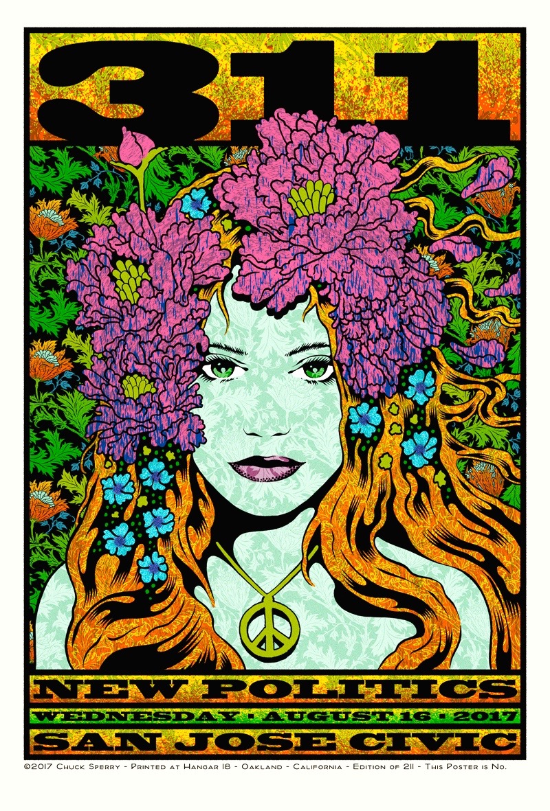 8/16/17 San Jose, CA Posted by311ArchiveAugust 16, 2017October 9, 2023Posted in2017, CA, Chuck Sperry, Posters Artist: Chuck SperryShow: 8/16/17 City National Civic in San Jose, CA Related