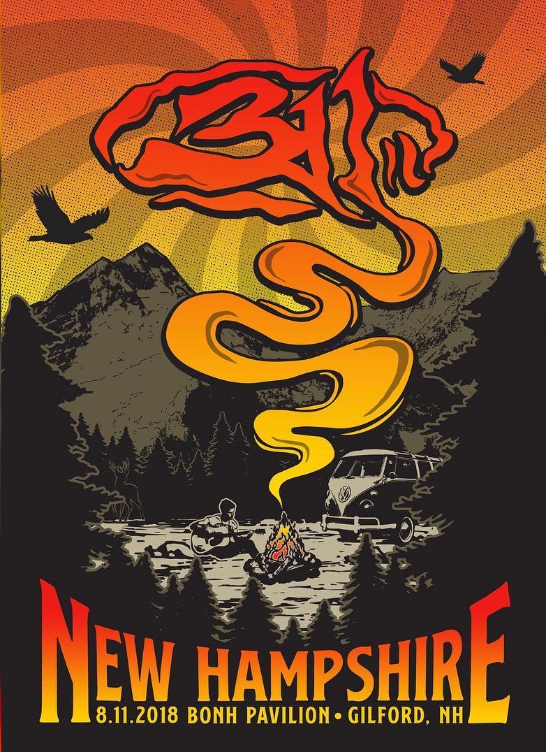 8/11/18 Gilford, NH Posted by311ArchiveAugust 11, 2018August 24, 2024Posted in2018, Garett Watt, NH, Posters Artist: Garett WattShow: 8/11/18 in Bohn Pavillion in Gilford, NH Related
