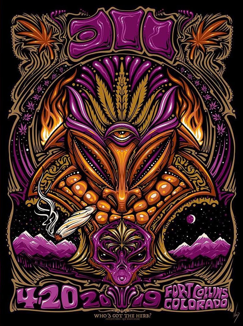 4/20/19 Fort Collins, CO Posted by311ArchiveApril 20, 2019October 9, 2023Posted in2019, CO, Jeff Wood, Posters Artist: Jeff WoodShow: 4/20/19 Aggie Theatre in Ft. Collins, CO Related