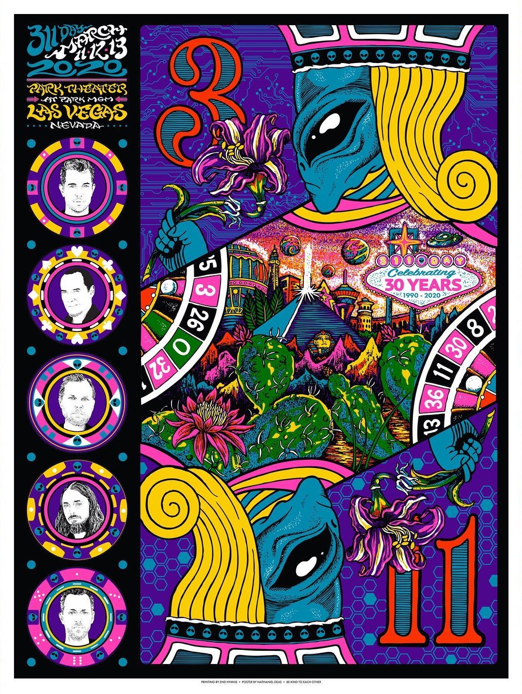 311 Day 2020 (Deas) Posted by311ArchiveMarch 11, 2020August 24, 2024Posted in2020, 311 Day, 311 Day Merch, Nathaniel Daes, NV, Posters, Special Events Artist: Nathaniel DeasShow: 311 Day 20203/11 – 3/13/20 Park Theater in Las Vegas, NV Related