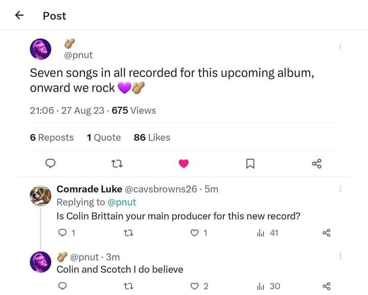 P-Nut dropped additional news on the progress of the new record on Twitter (X) with staus of songs and naming producers!
