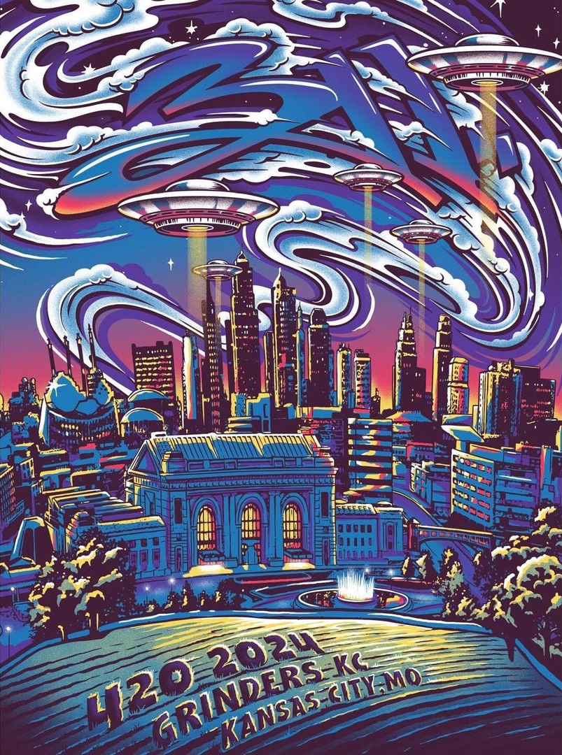 4/20/24 Kansas City, MO Posted by311ArchiveApril 20, 2024Posted in2024, Bryan Zellner, MO, Posters Artist: Bryan ZellnerShow: 4/20/24 Grinders KC / Kansas City, MO w/ festival line-up Related