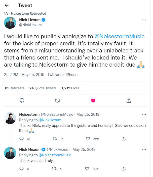 Nick came forward, publicly apologizing and reparations were made. The matter was settled amicably.