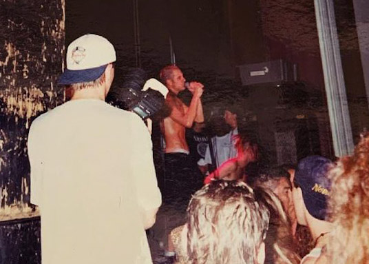 Nick says about the first photo, “I think that was Irving Plaza in the dressing room. Right before we stuck our heads out the window and started waving to the crowd who got worked up into a frenzy until a horse mounted police came to disperse!