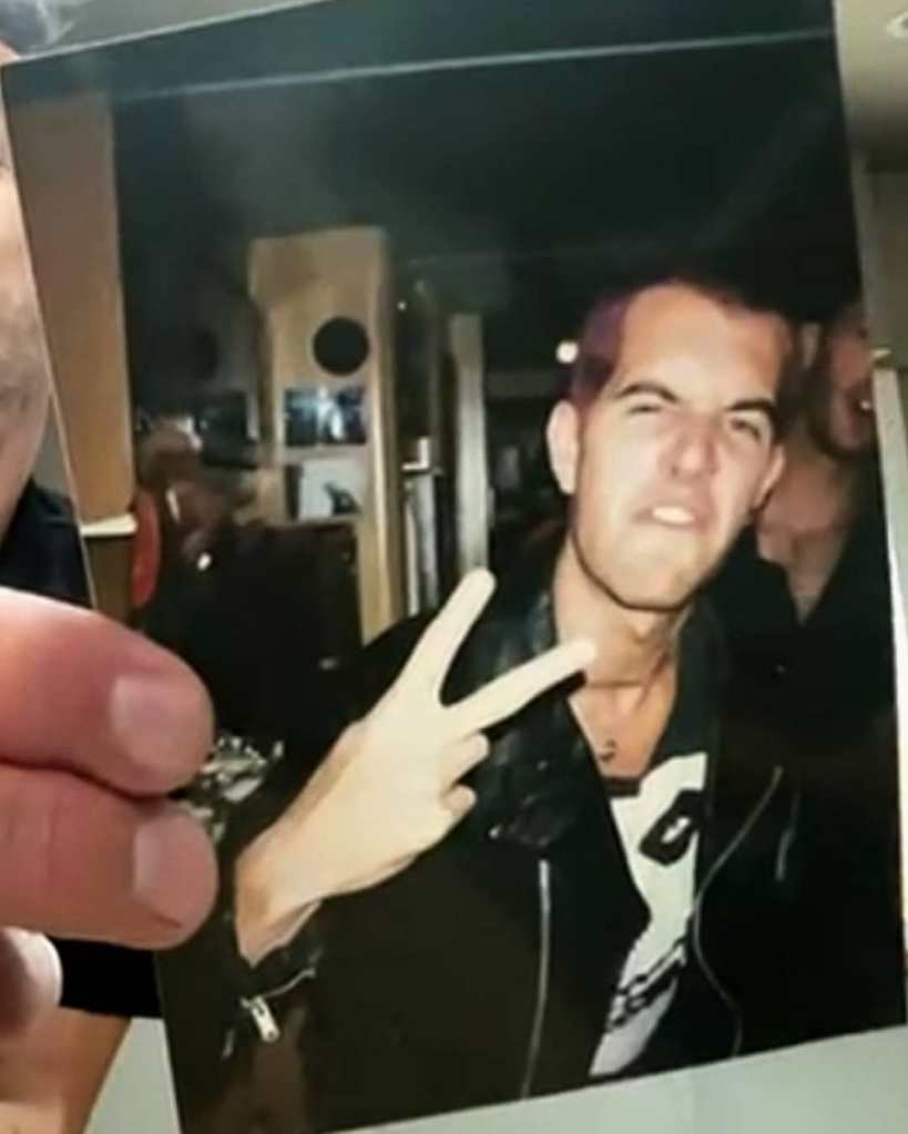 Nick says, “Dressed up punk rock for that Halloween show Purple hair. I remember pushing a safety pin through my ear.”
