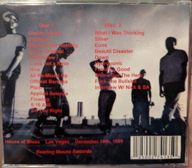 Omaha Stylee, Freak Out, Freeze Time, Misdirected Hostility, Come Original, Homebrew, Life’s Not A Race, Hive, All Mixed Up, Offbeat Bareass, Plain, Applied Science, Flowing, 8:16AM, Do You Right, What Was I Thinking, Silver, Eons, Beautiful Disaster, Hydroponic, Feels So Good, Who’s Got The Herb, Fuck The Bullshit, Interview