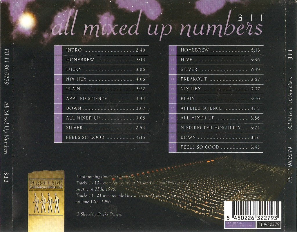 Lucky, Plain, Applied Science, Silver, All Mixed Up, Feels So Good, Homebrew, Down, Misdirected Hostility, Hive Nix Hex, Jam, Freak Out, Do You Right, “Fresh Cut”, All Mixed Up, Hive, Lucky, Feels So Good, Unity, Plain