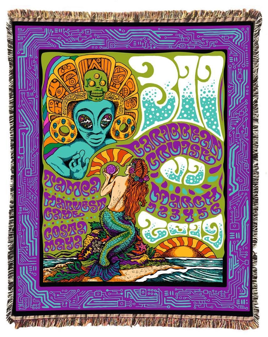 Artist: Nathaniel DeasShows: 2/28-3/6/19 311 CARIBBEAN CRUISE VI Harvest Caye, Belize and Costa Maya, MX w/ festival line-up * This design was woven into a blanket *
