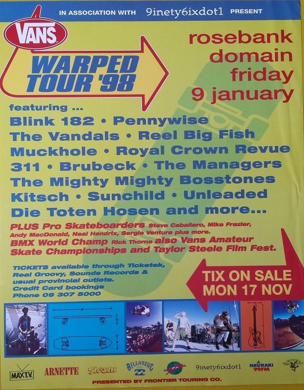 Show: Warped Tour 981/9/1998 North Shore Stadium in Auckland NZ