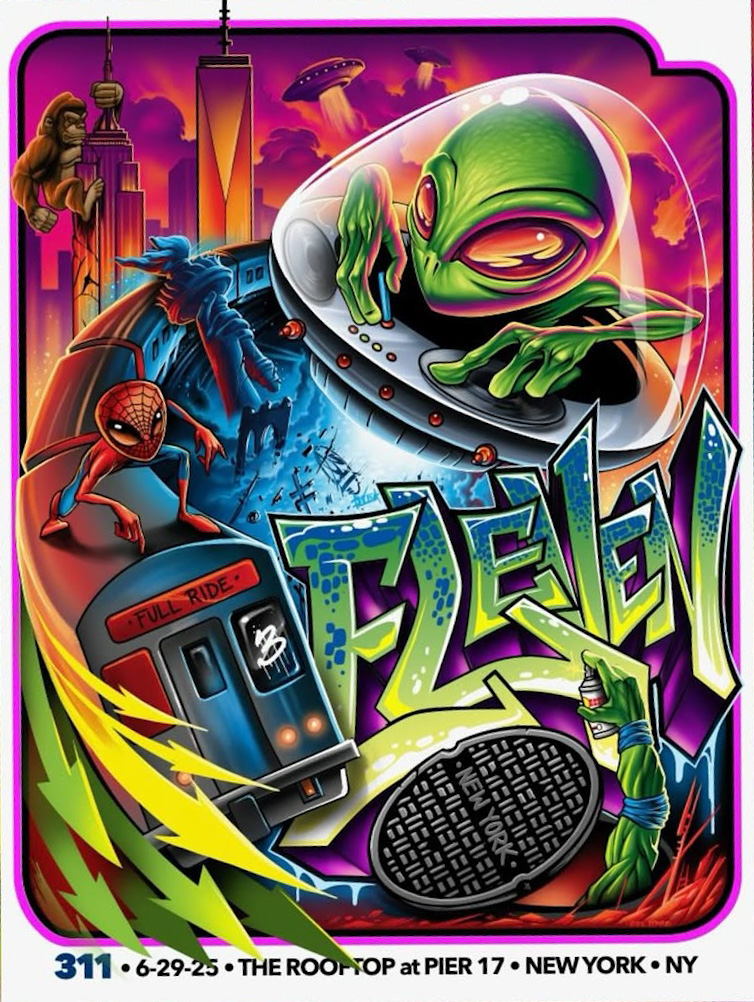 Show: The Rooftop at Pier 17/ New York, NY w/ Badflower and Sitting on Saturn Artist: Maxx 242 Count: Regs numbered out of 113 with 15 band signed regs. Foils numbered out of 50.