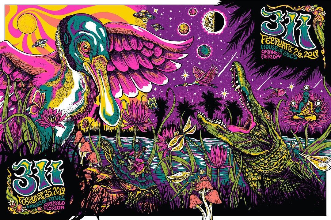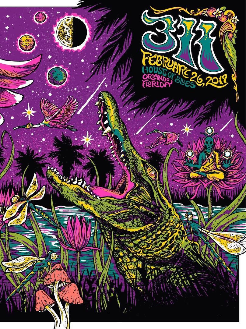 Artist: Nathaniel DeasShows: 2/28-3/6/19 311 CARIBBEAN CRUISE VI Harvest Caye, Belize and Costa Maya, MX w/ festival line-up * This design was woven into a blanket *