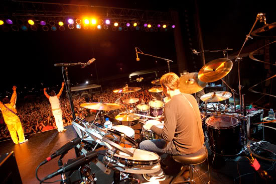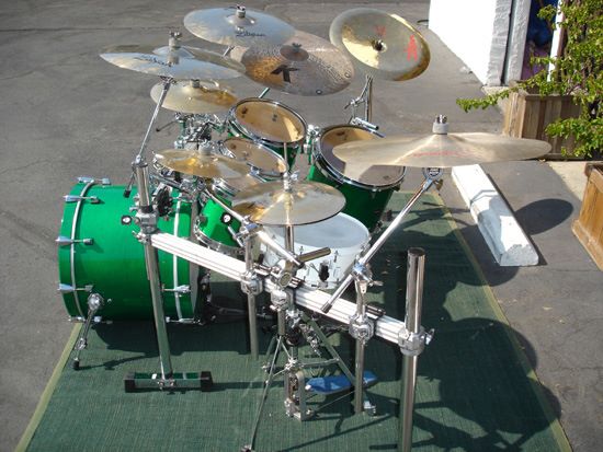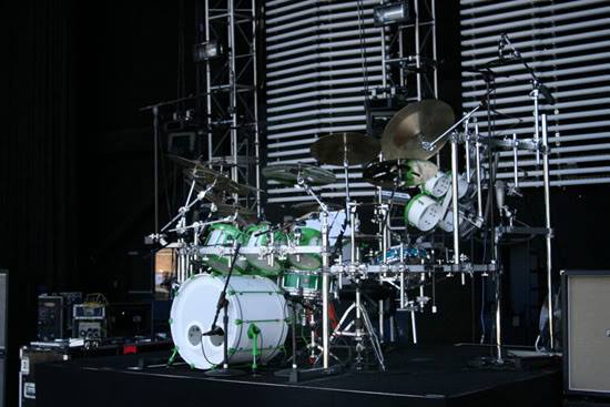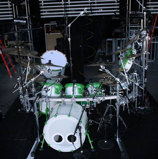 Chad said, “This was the mack daddy kit. OCD went all out in building this one. They added gear like Octabons and a 20” concert floor tom! Zildjian kicked down a gong to go with it! This kit was used in the “Beautiful Disaster” and “Come Original” videos and for the Transistor Tour.”