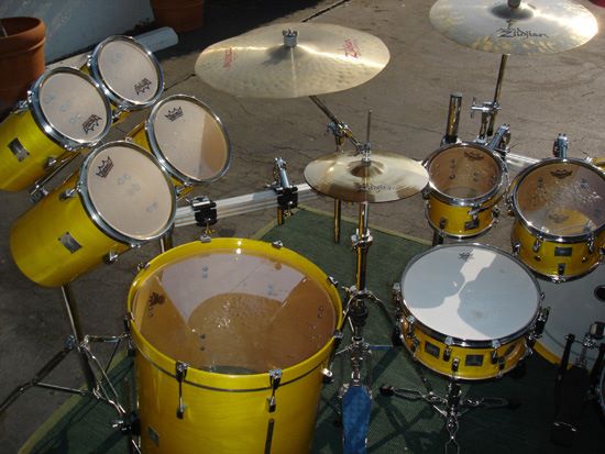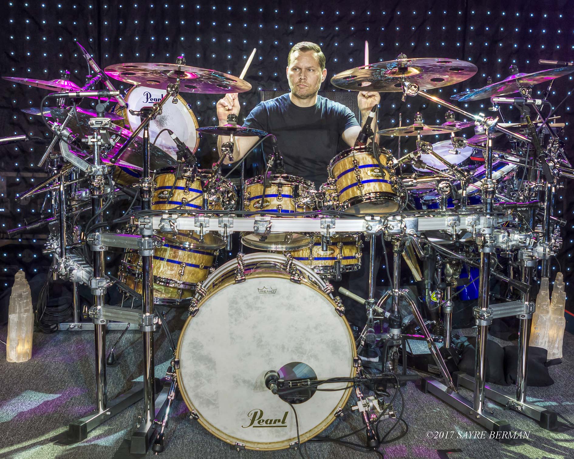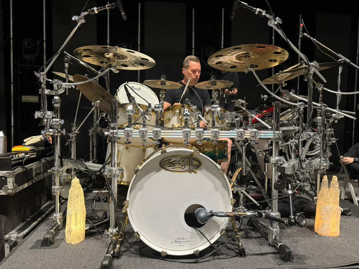 “Before I was getting really customized drums. You can go anyway you want. You can go for more looks or more sound. I experimented with both. I went for the crazy things like the looks, but then youre losing sound. With Pearl, I’m just getting really nice drums made. I’ve experiemented with my sound… and it’s really come into its own.”