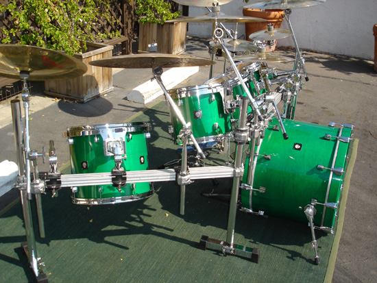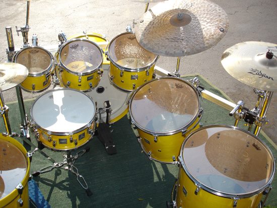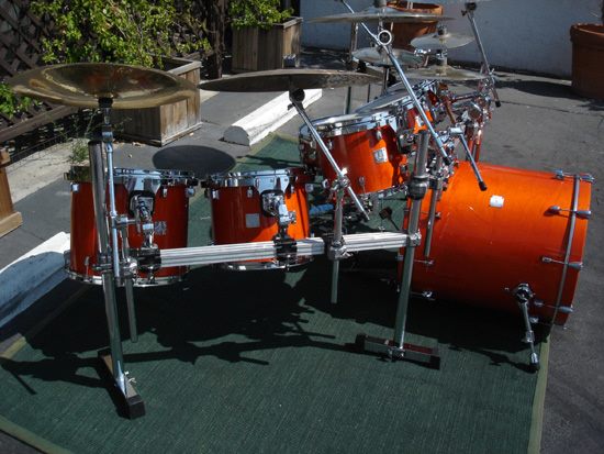 Chad said, “Beautiful laquer kit. Nice tight sizes. These drums sound and look great. The bass drum came in 20”x22” and 22”x22”. This kit was used in the “You Wouldn’t Believe” video and on the Soundsystem and From Chaos tours.”