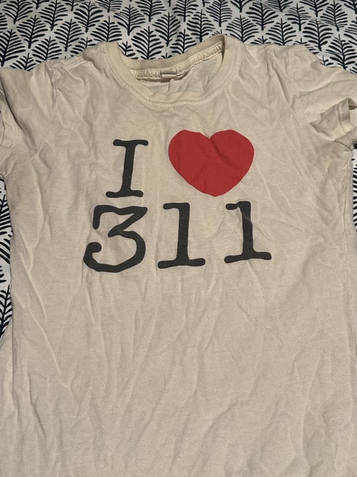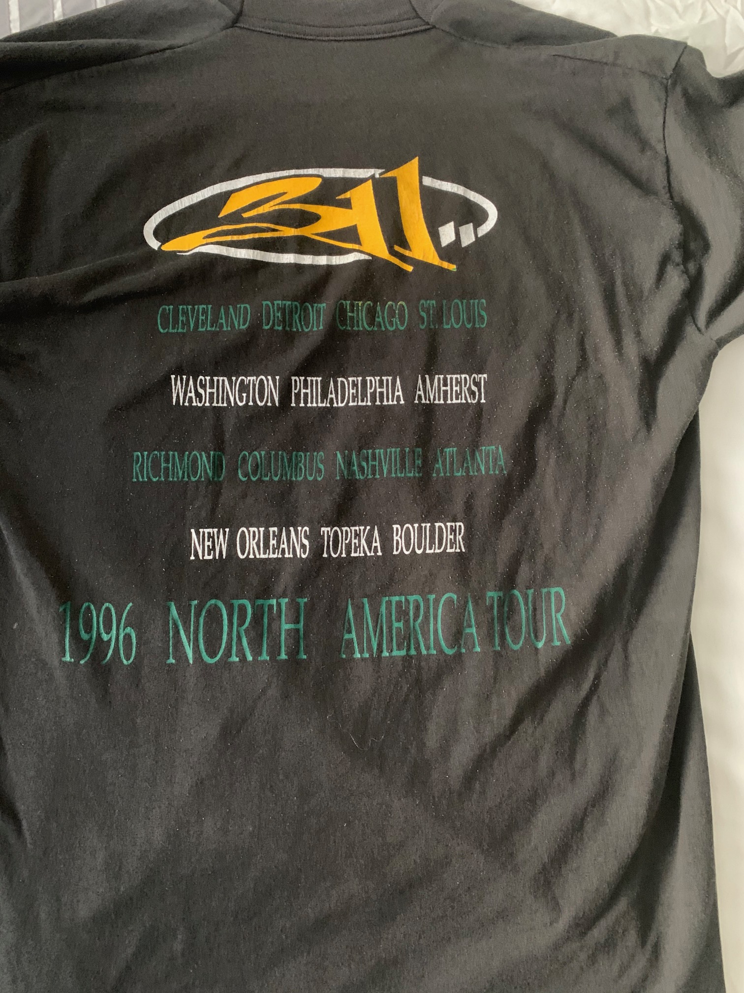 Vintage Shirts 311’s First Shirt Bullseye In Your Face Music Sunflower Herb Music Kid Grassroots Long and Short Grass Roots Grassroots Band Shirt Grassroots 311 Board Shirt Lotus Buddha Hot Wheels Shiva Hawaiian Tee Flying Cob Orbit 311 Classic (Multiple variants) Rocket Graffiti 311 (Alien backed) 311 Ear Polos 1995 Europe Tour Three Eleven Tiki Head Camo 1996 Tour Alien and Bars Spotted Logo 5 Little Aliens 1997 TransisTour Transistor Sky TransisTour Tee Transistor Icons 7-11 Old English Transistor Single Shirt Burning Ball 311 Flames Super Renegade Soundsystem Hazard Ear Candy 311 Alien Band Soundsystem Car 311 High Alien DJ 311 Cubed Soundsystem Red Ovals 311 Graffiti From Chaos Flames From Chaos Fire Philly 2001 Tour 2001 FC Toon 2001 Band Shirt 2002 Watch Roadhouse 01/02 Jersey Dragon Longsleeve Evolution 311 Evolver Logo with backtag 311 Day 2004 Heroes Mutual of Omaha 311 Star 311 Flames Three Eleven Letters 2005 Palm Trees 311 DTOM 2005 Band Shirt 311 Day 2006 Hive Shirt 2006 Unity Tour Crest Reggae Coast Butterfly in the Wind Island Vibes Road Sign Reggae Lion King Island Boombox I Heart 311 Coca-Cola Classic Title Collage 2007 Summer Unity Palm Tree Pine Trees Birds Guitar Island Dual Suns 2008 Unity Tour 2008 Summer Unity Eye of Horus 2009 Unity Tour 3Eleven Dove 2010 Unity Tour Red Gold Green Crest 2010 Halloween Pow Wow Feathers Pow Wow Owl Pow Wow Headdress